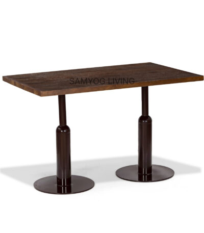 Sleek wooden top paired with sturdy metal bases