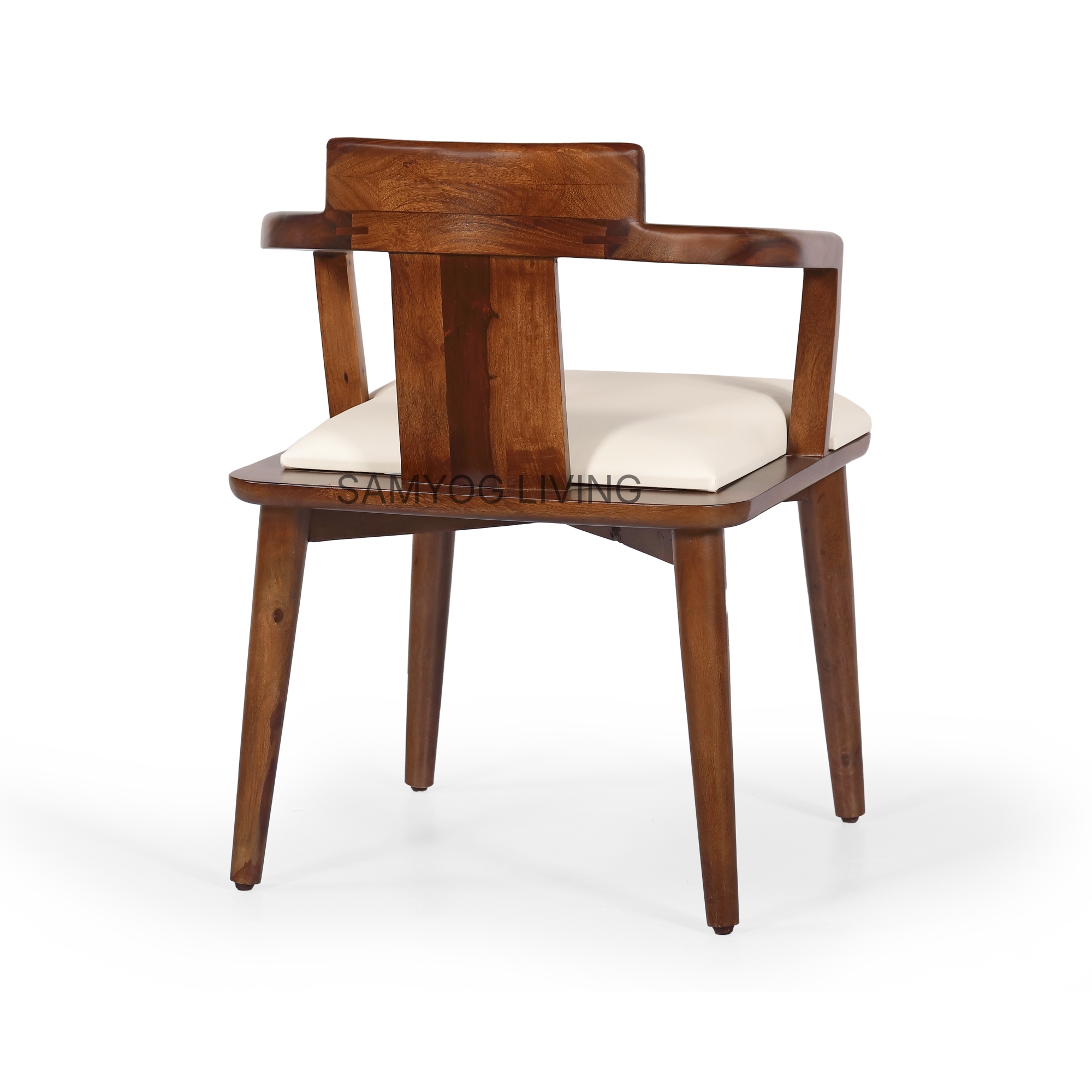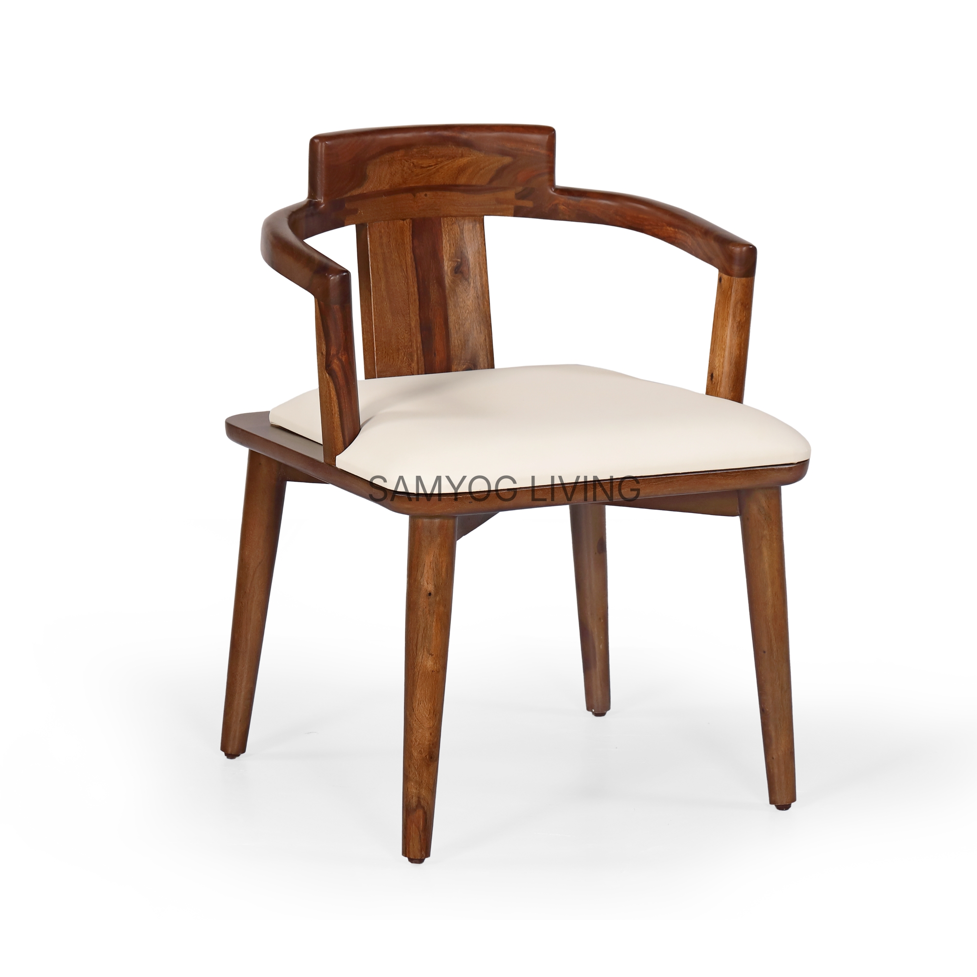 The Ady Dining Chair brings together refined craftsmanship and modern minimalism, making it a perfect fit for premium dining spaces. Crafted from solid wood, it features a beautifully contoured backrest and elegantly curved arm supports that provide both style and comfort. The soft upholstered seat enhances the seating experience, making it ideal for long meals and relaxed conversations.