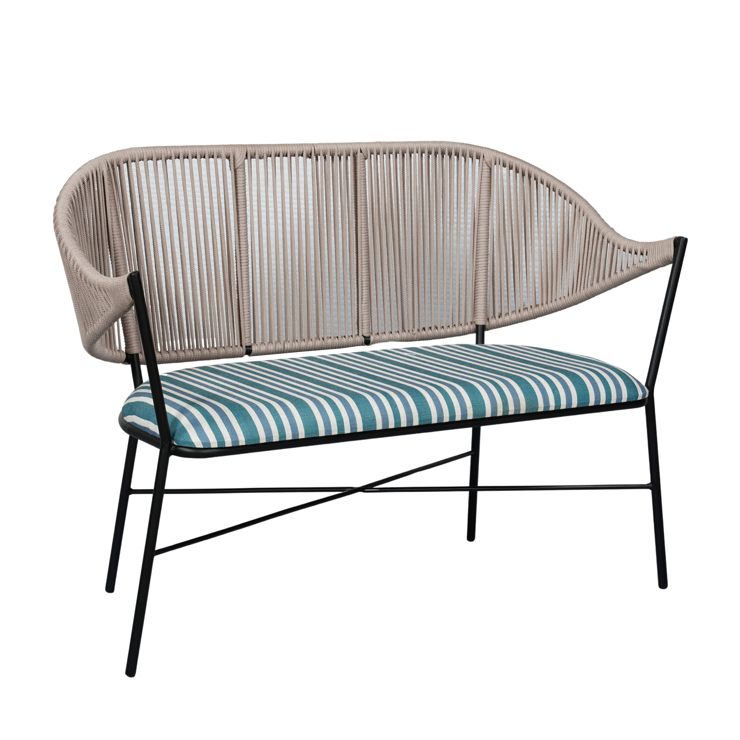 • Elegant rope bench with handwoven curved backrest