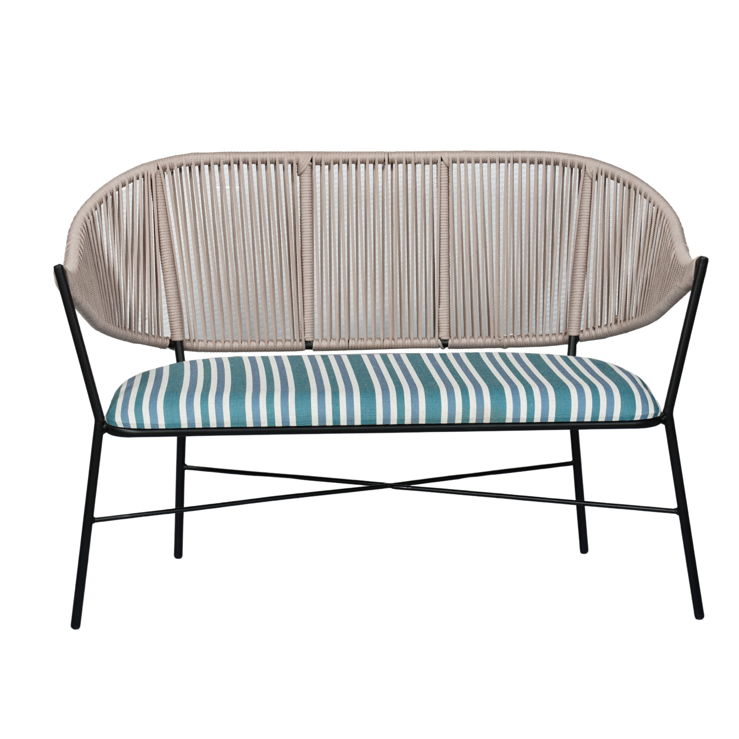 • Stylish rope bench with curved woven back