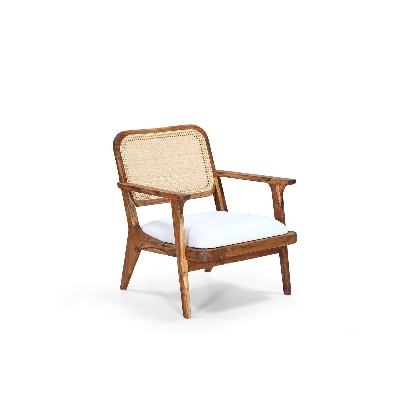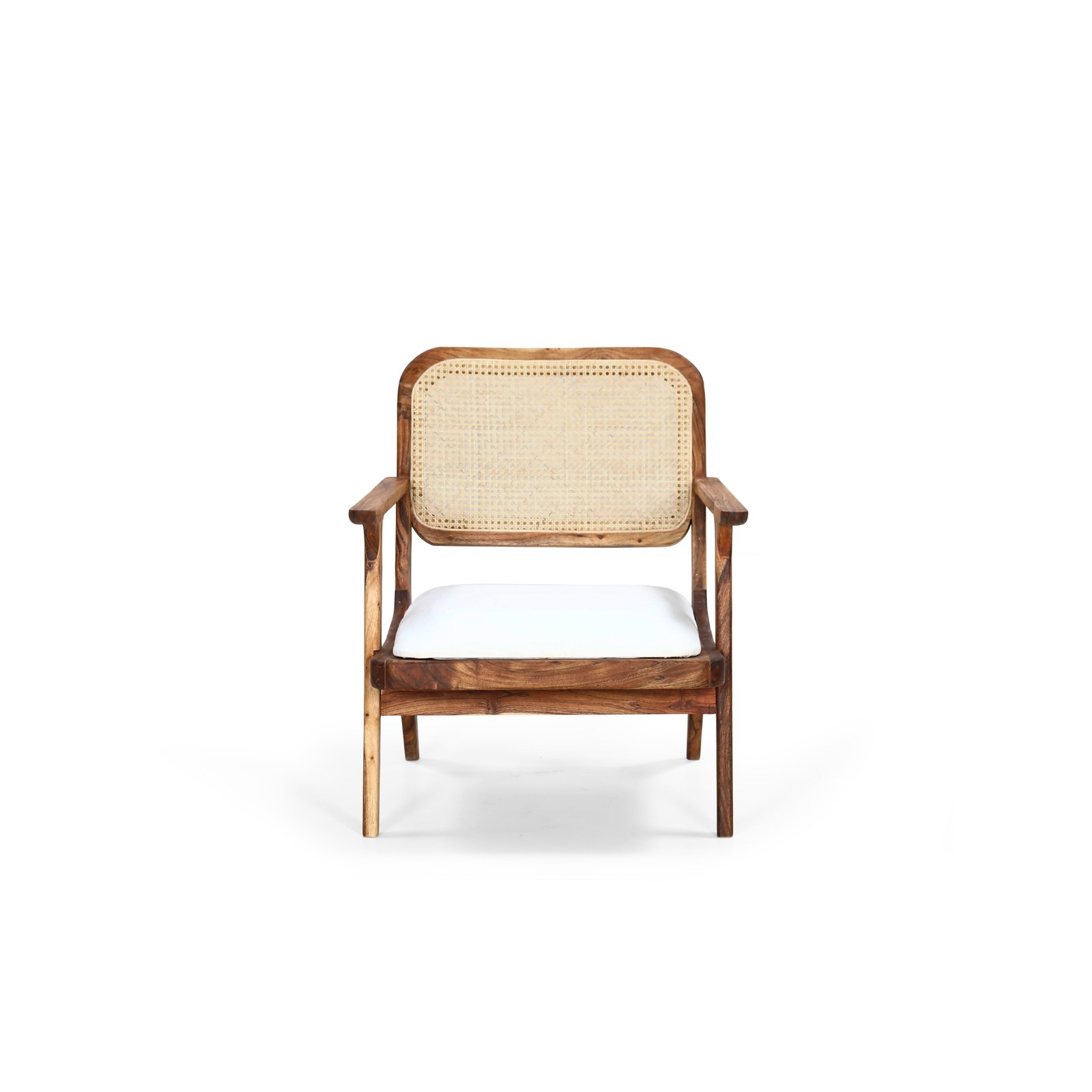 The Derby Arm Chair embodies relaxed sophistication and timeless craftsmanship. Expertly handcrafted from solid wood, it features a woven cane backrest paired with plush cushioning that offers effortless comfort. With its warm natural finish and mid-century silhouette, this piece blends organic texture with refined design — perfect for both modern and classic interiors.