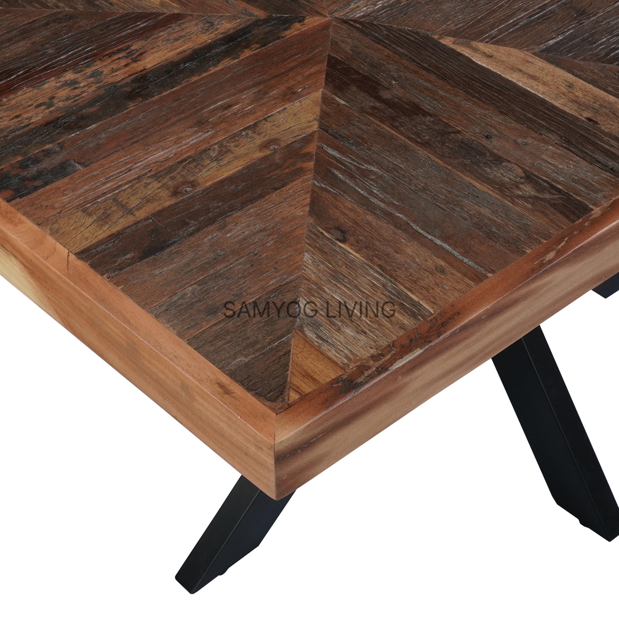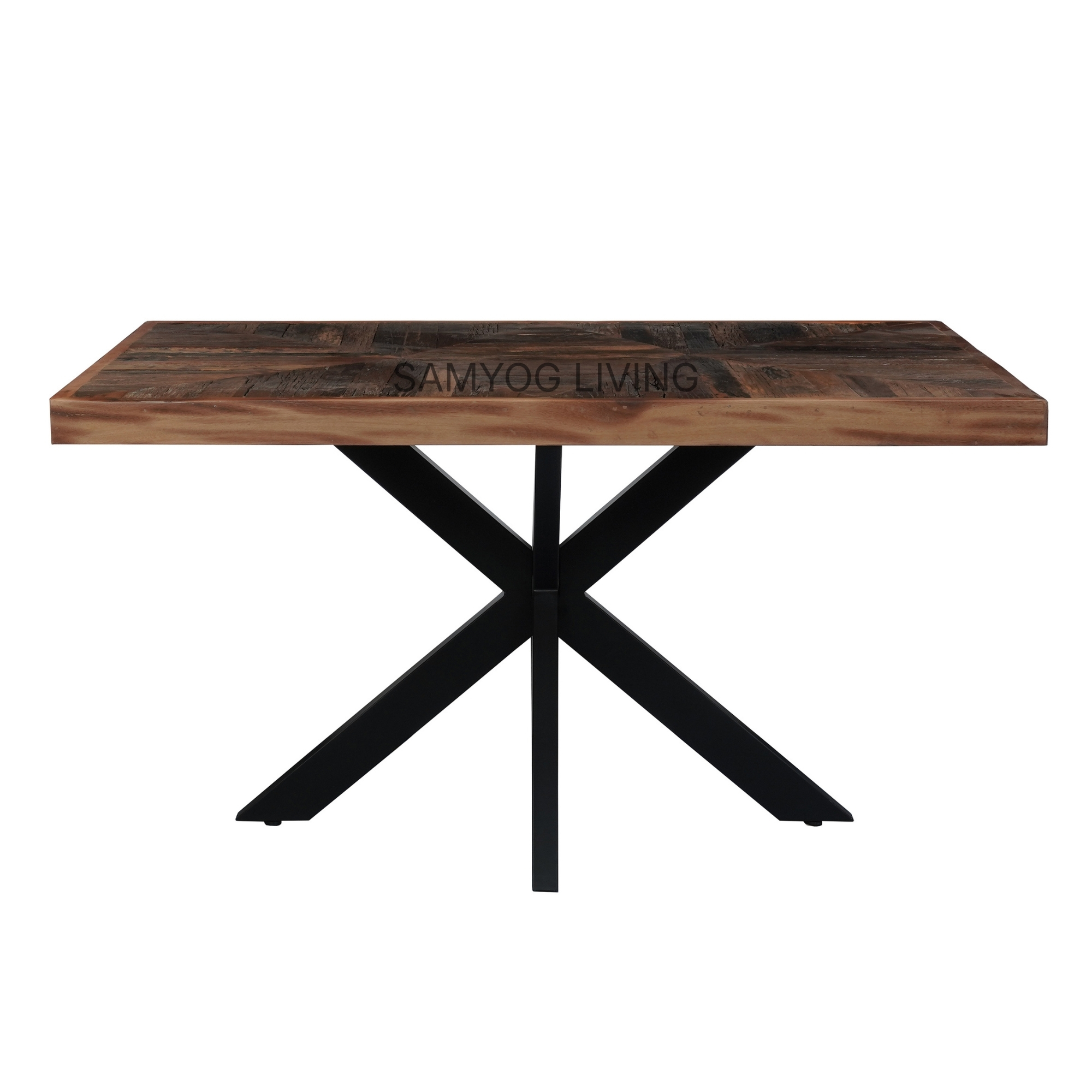 The Elite Cross-Frame Dining Table by Samyog Living is a perfect blend of natural craftsmanship and modern industrial design. Expertly crafted with a premium solid wood tabletop and a striking geometric metal base, this elegant solid wood dining table creates a bold focal point in contemporary dining spaces.