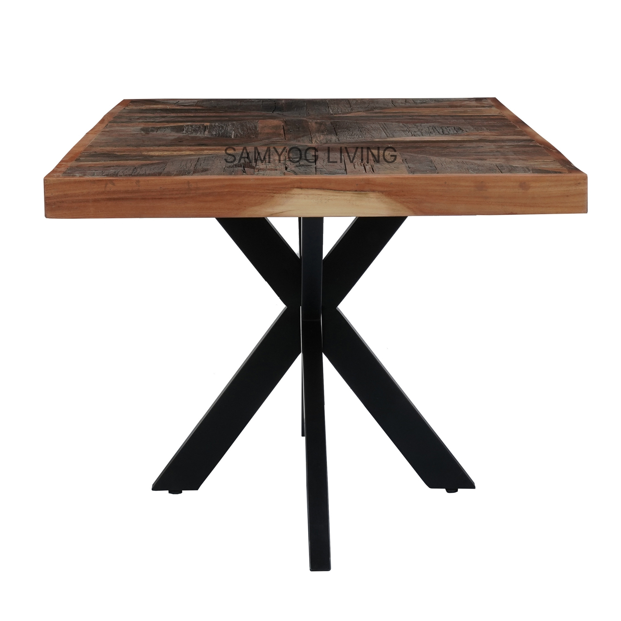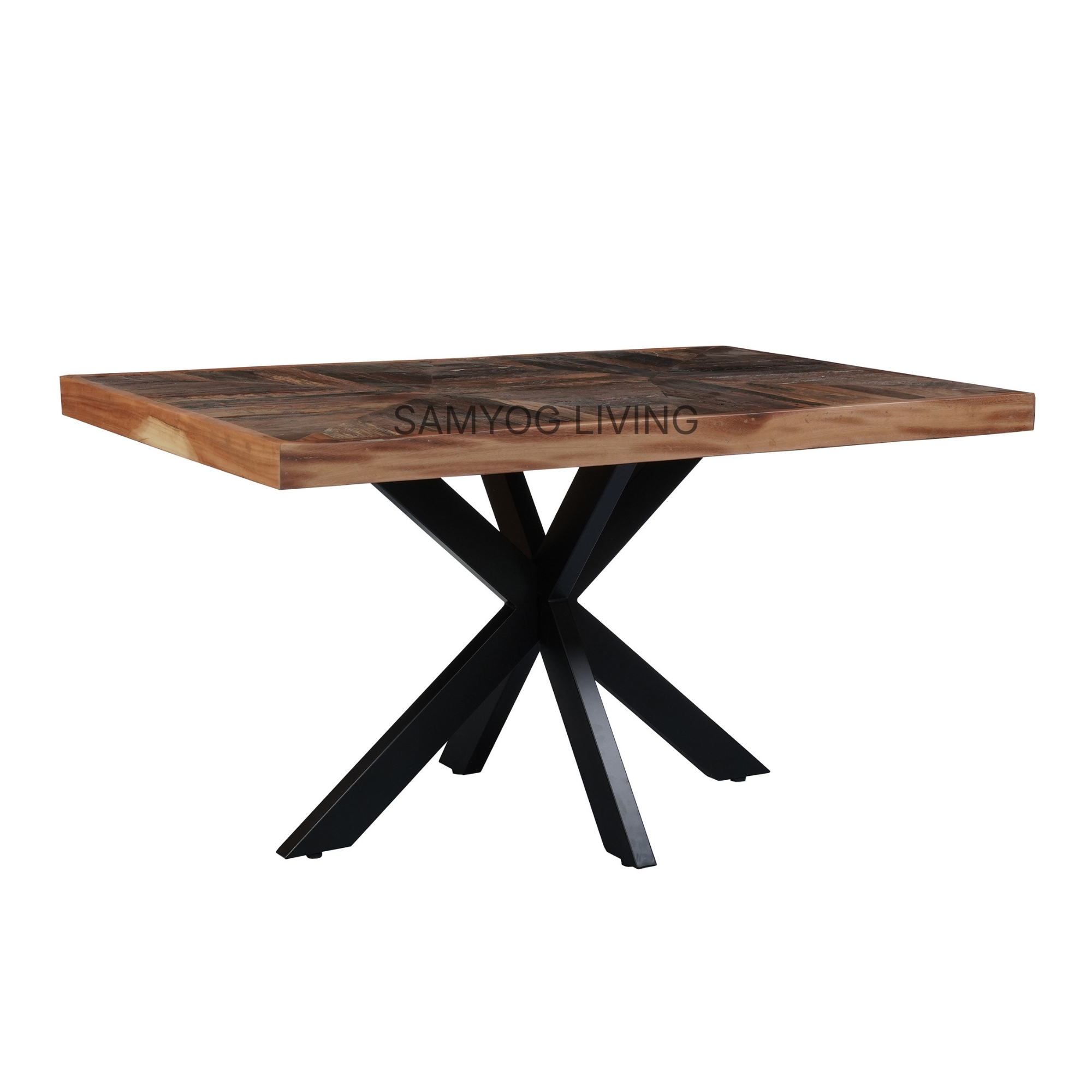 Elite Cross-Frame Dining Table – Solid Wood Dining Table with Metal Base