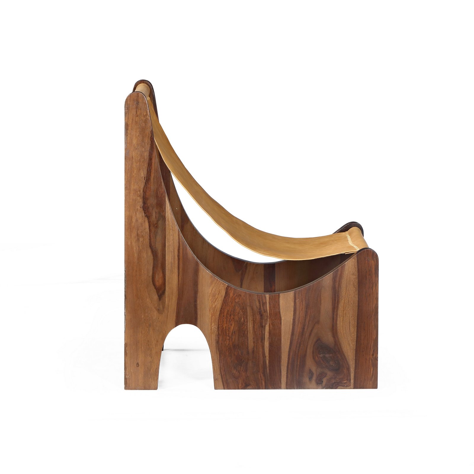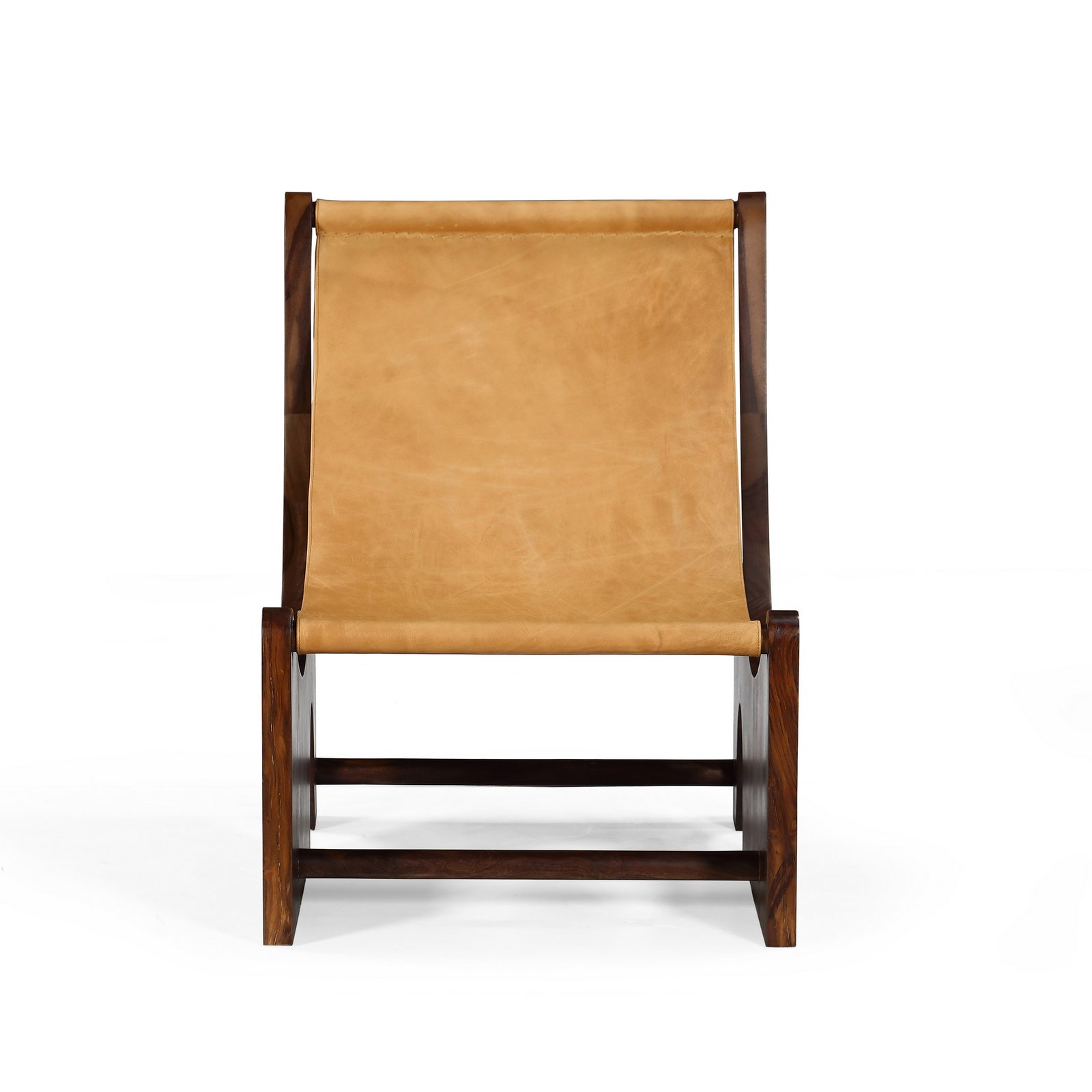 Inspired by the Wabi-Sabi philosophy of natural imperfection and timeless beauty, the Sabi Lounge Chair celebrates the raw elegance of solid wood and genuine leather. Its sculptural form and curved silhouette combine craftsmanship with comfort, making it a statement of understated luxury. The warm tones of the wood frame and the supple leather sling seat create a harmonious balance of texture and form — ideal for serene living spaces, reading corners, or hospitality interiors.
