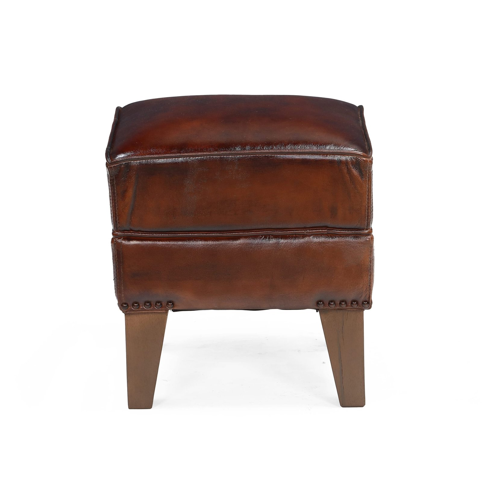 A classic accent that exudes timeless charm, the Samatva Leather Pouf is handcrafted in rich distressed leather for a warm, vintage look. The solid wood base adds strength and stability, while the plush cushioned seat ensures comfort. Perfect for living rooms, lounges, and hospitality interiors, it serves as an elegant footrest, extra seat, or statement accent.