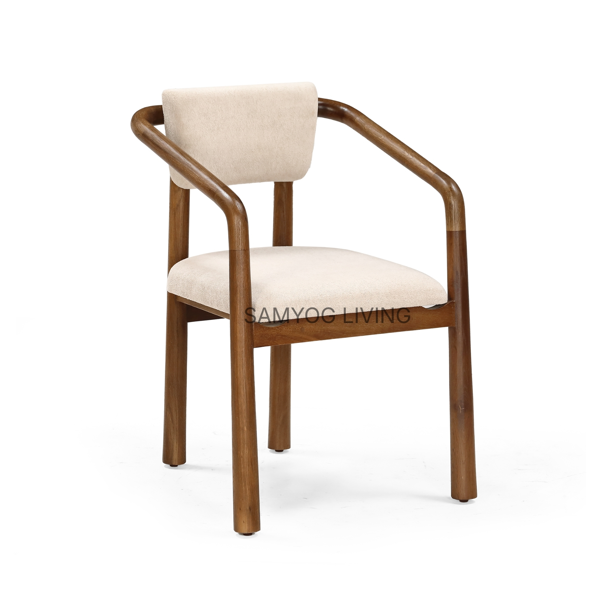 • Smooth curved wooden arms for a refined, modern silhouette