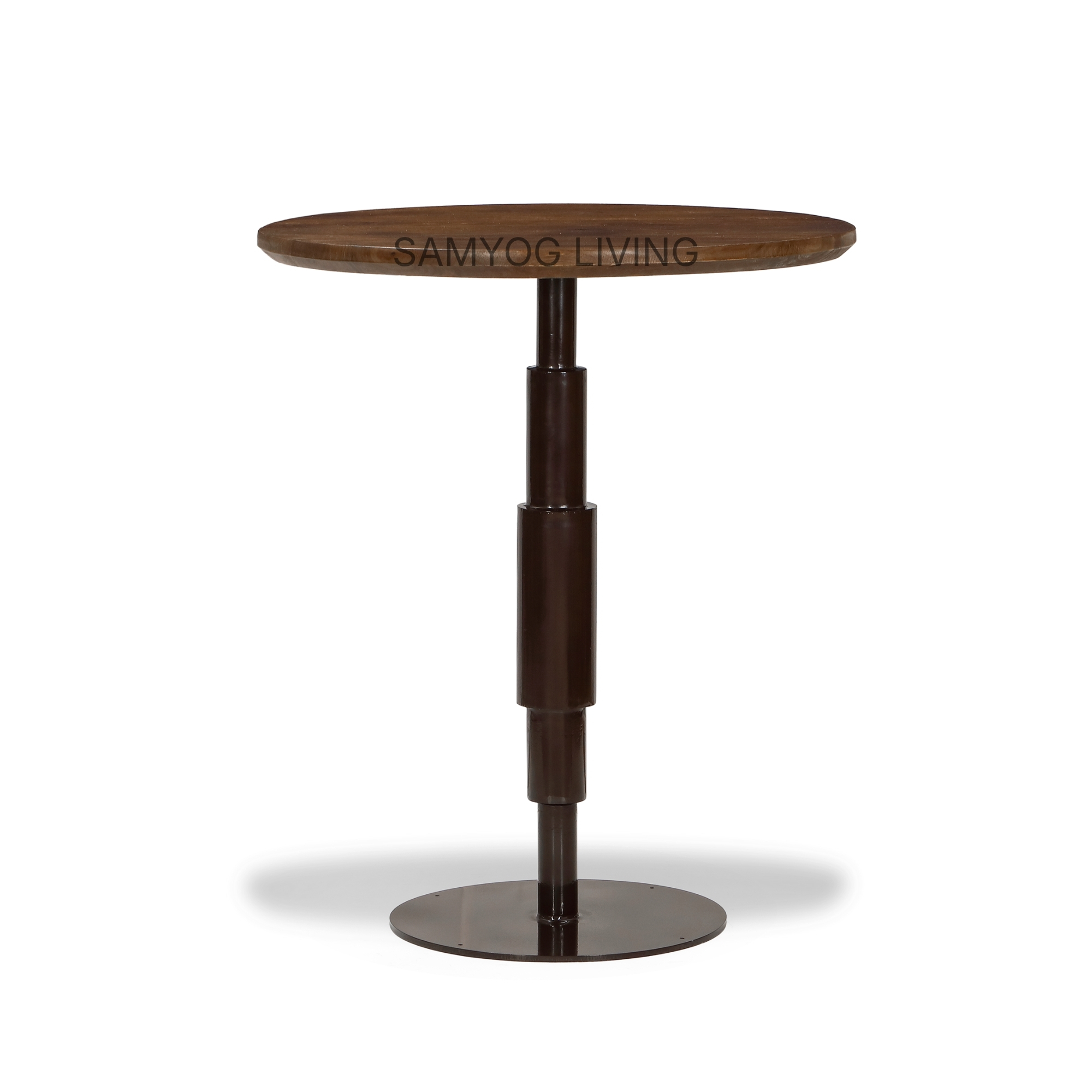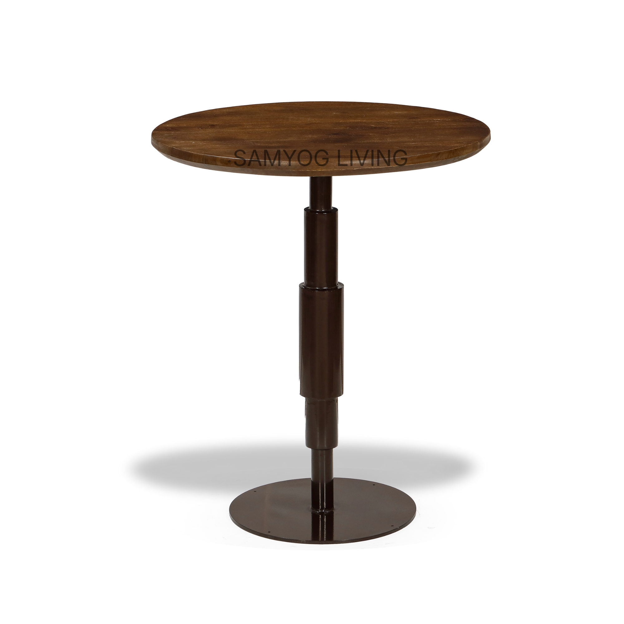 The Taki Round Bar Table brings together contemporary elegance and robust craftsmanship, making it an excellent addition to modern cafés, bars, restaurants, and compact dining spaces. Featuring a beautifully finished solid wood tabletop paired with a sleek metal pedestal base, this design blends warmth with industrial sophistication.