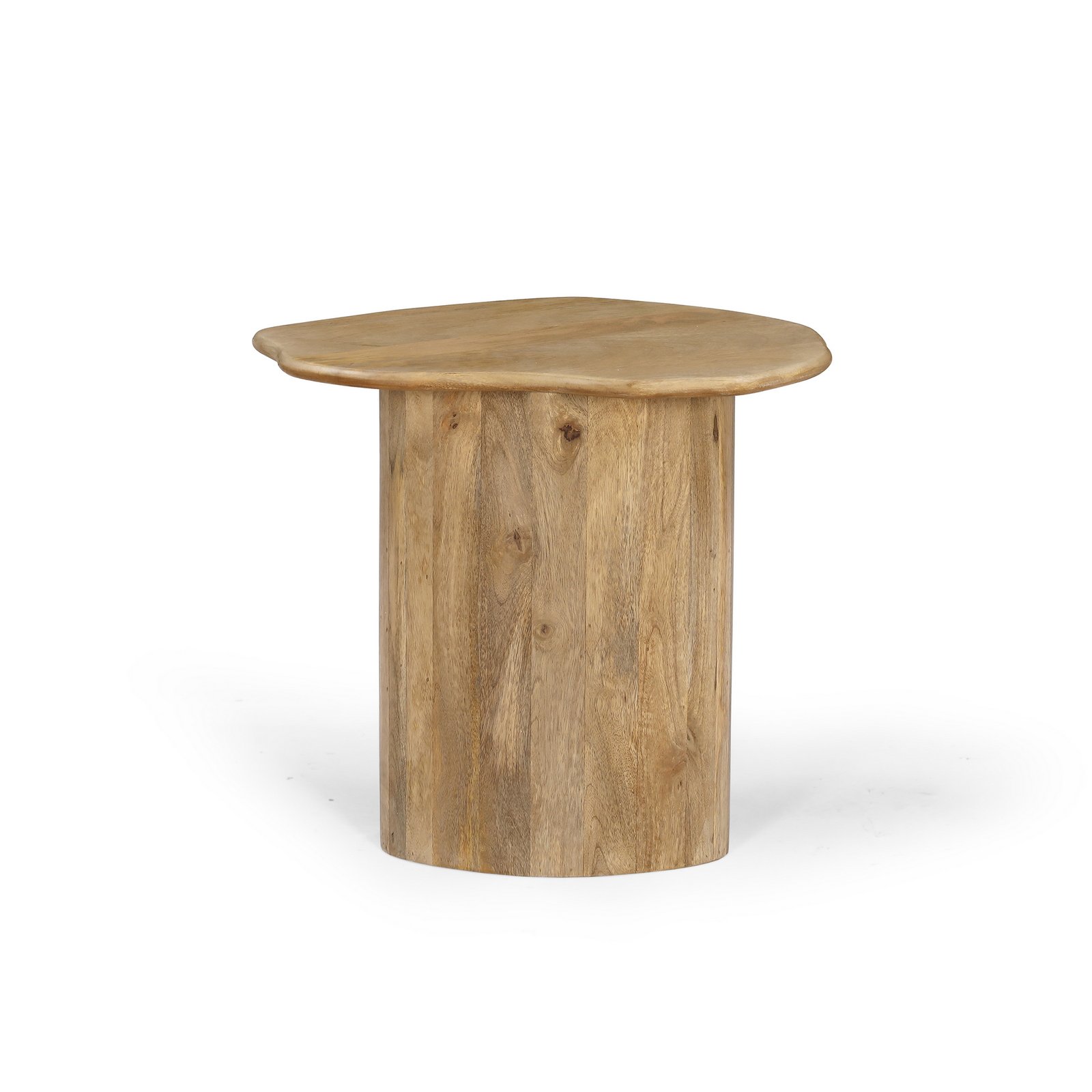 The Thomas Side Table by Samyog Living is a sculptural piece handcrafted from solid mango wood, showcasing organic curves and rich natural grains. Its smooth, asymmetrical top paired with a rounded base adds a touch of artistic elegance to modern and rustic interiors alike. Perfect as a bedside, accent, or living room table, it celebrates the raw beauty of solid wood craftsmanship.